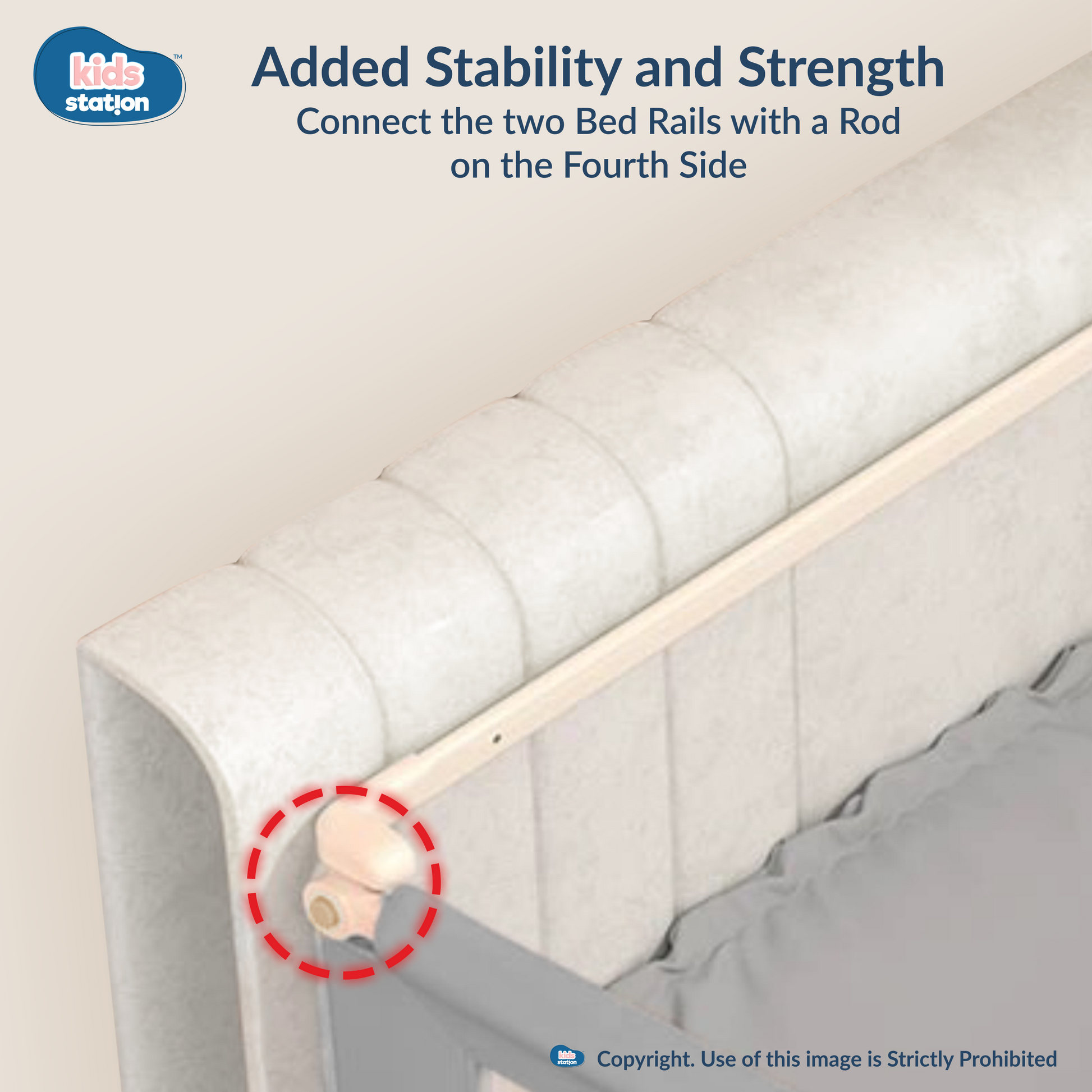 Yes, Kids Station Bed Rails come with a 3-month warranty covering manufacturing defects in the frame (such as weld breaks, joint issues, or locking mechanism faults).