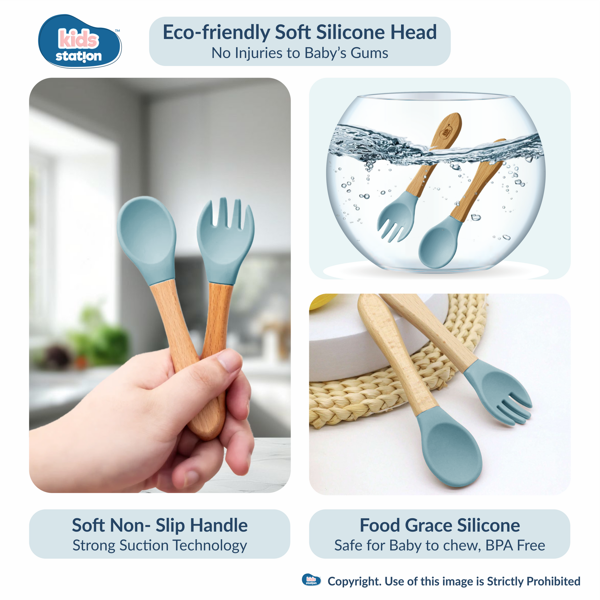 Material: Made from 100% natural bamboo wood with food-grade silicone suction base and soft-tip utensils.