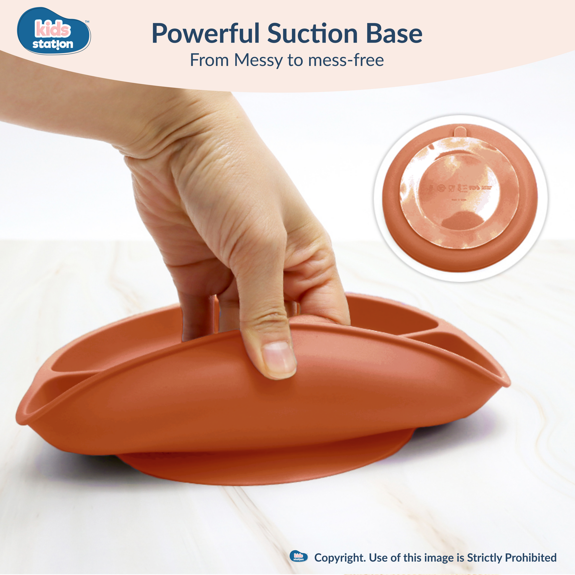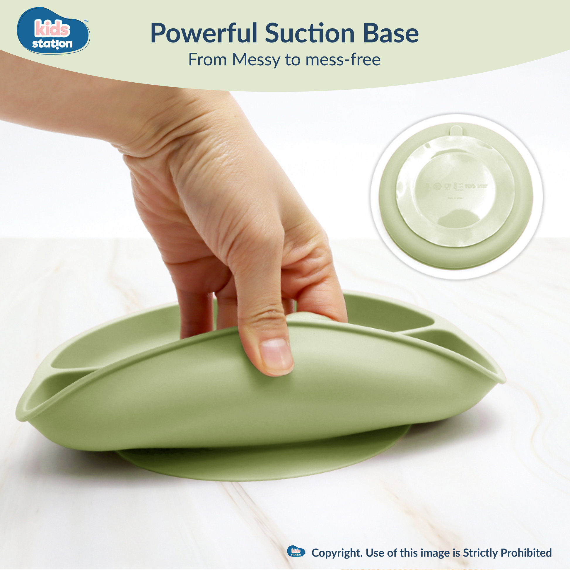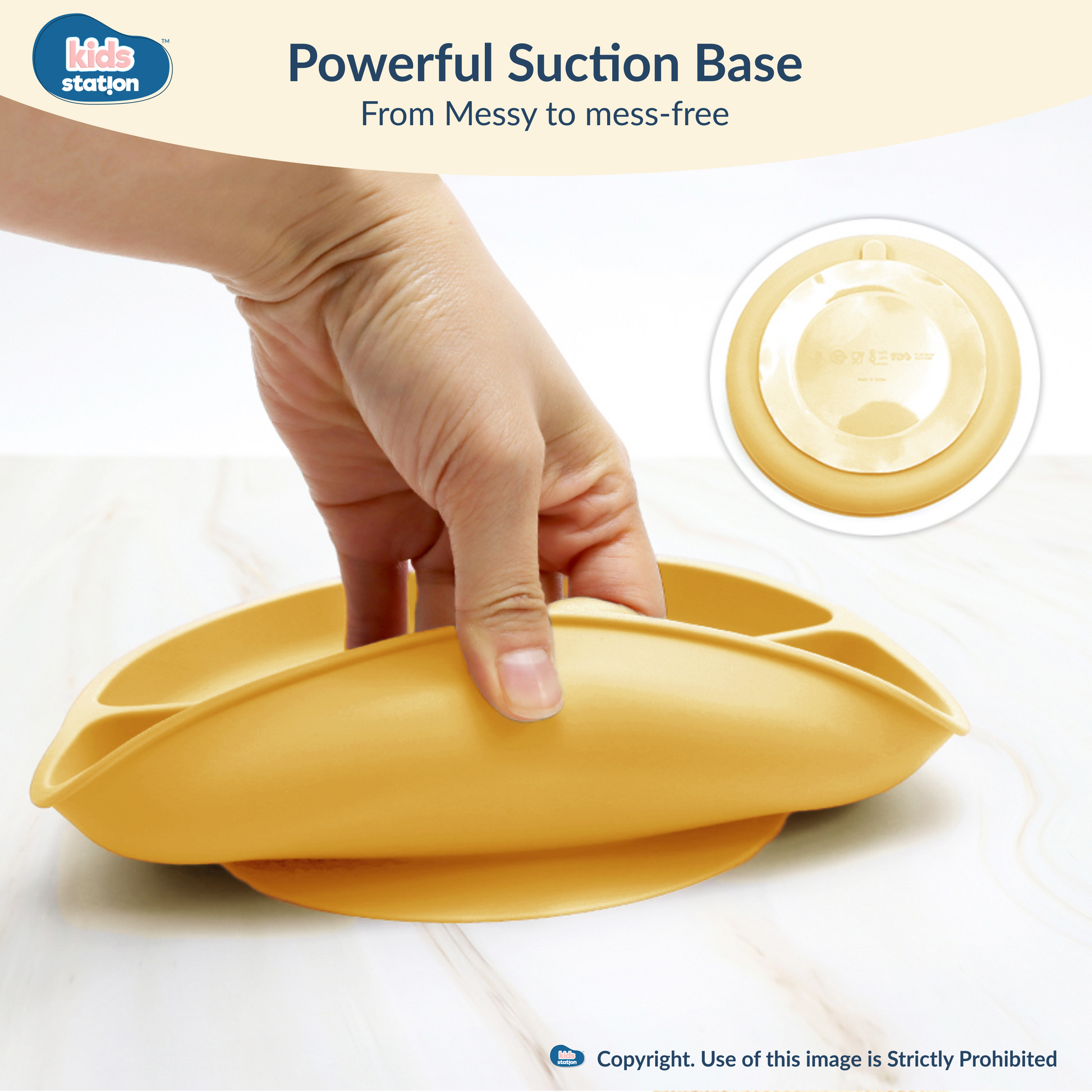 The plate’s powerful suction keeps it firmly in place, preventing spills and flipping—ideal for encouraging confident self-feeding.