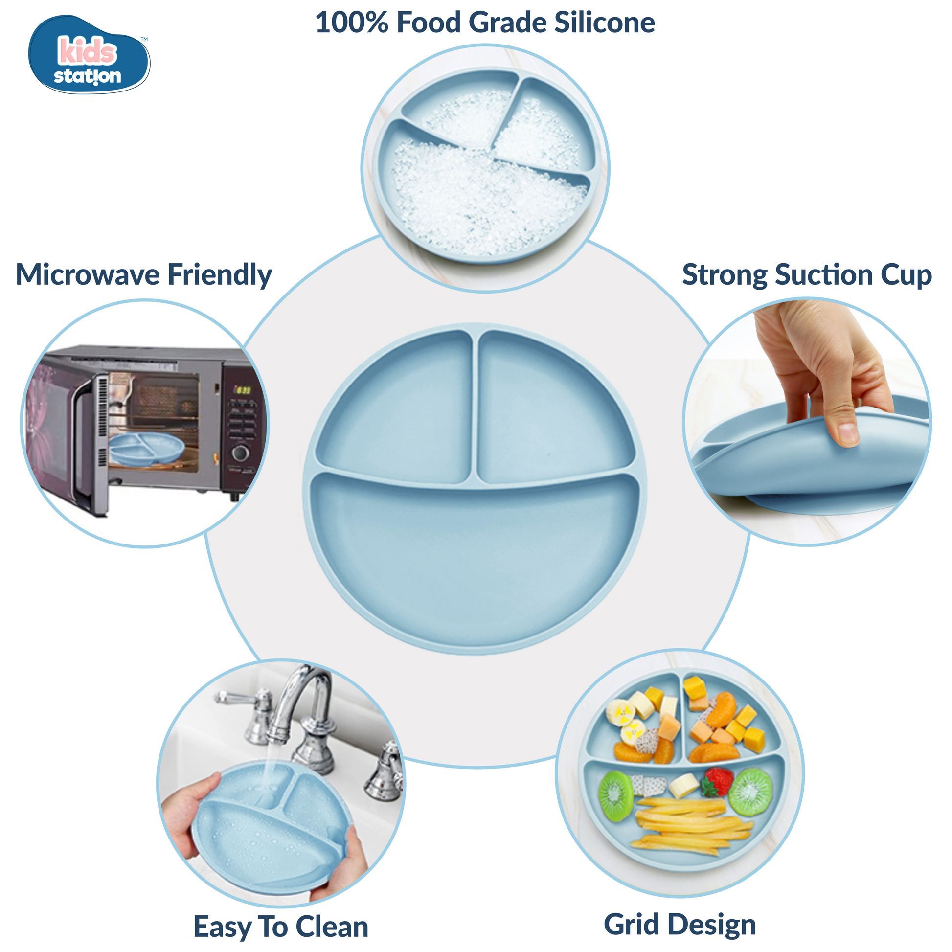 Make mealtimes fun, safe, and mess-free with the Kids Station 3-in-1 Silicone Feeding Set – featuring a strong suction plate, soft-tipped silicone spoon, and fork. Perfectly designed for babies starting solids and toddlers learning to self-feed independently.