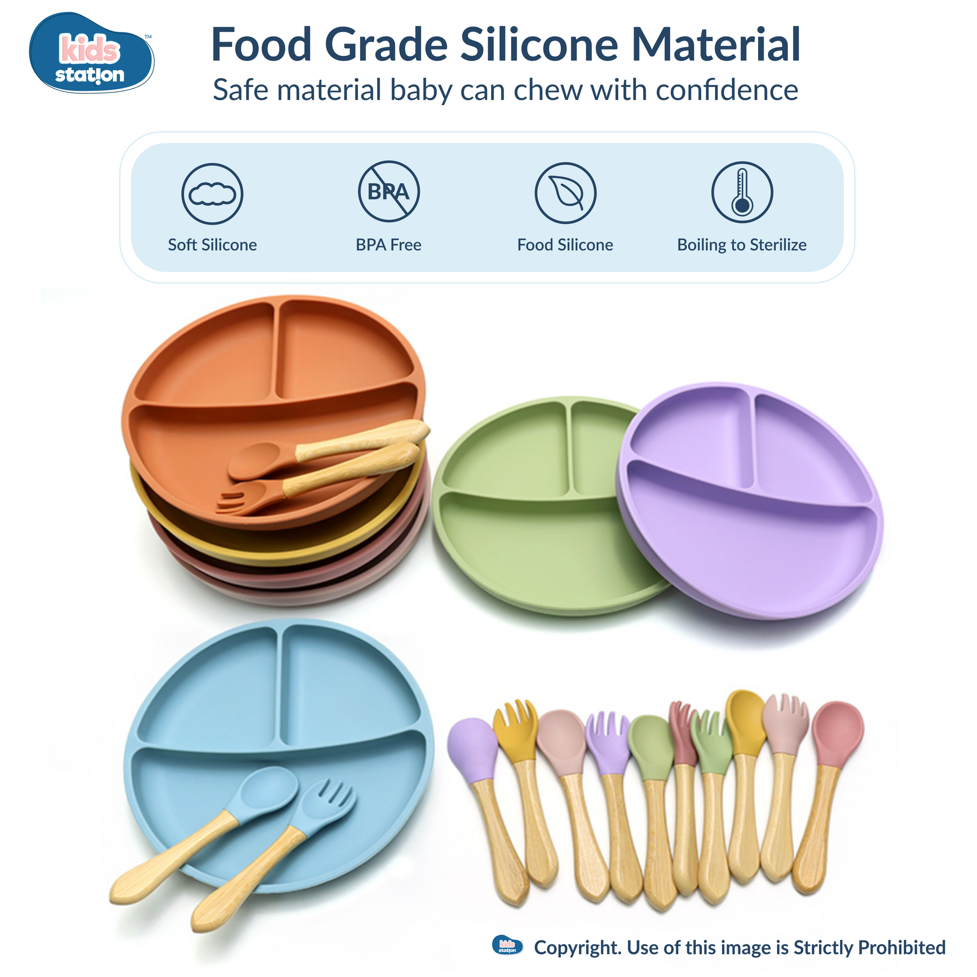 Silicone Plate, Spoon & Fork Set for Babies & Toddlers
